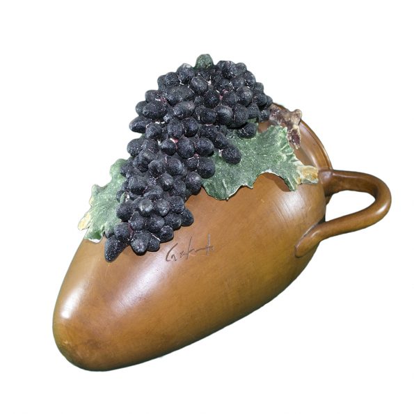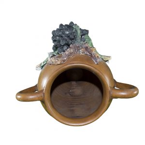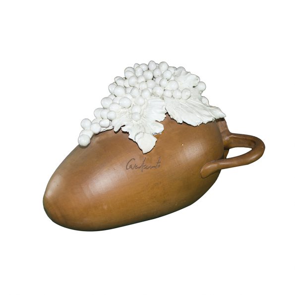 L'orcio è il tipico vaso panciuto e dalla forma un po' allungata completamente lavorato e decorato a mano in terracotta. La sua presenza risale a tempi antichissimi, veniva utilizzato per contenere liquidi come olio o acqua. Questa riproduzione artigianale in cotto, nel suo colore caldo e avvolgente, si incontra con la tipica decorazione di uva rossa scura e lucida perfetta nella sua manifattura. Un articolo da collezionare e apprezzare nella sua tradizionale bellezza.
