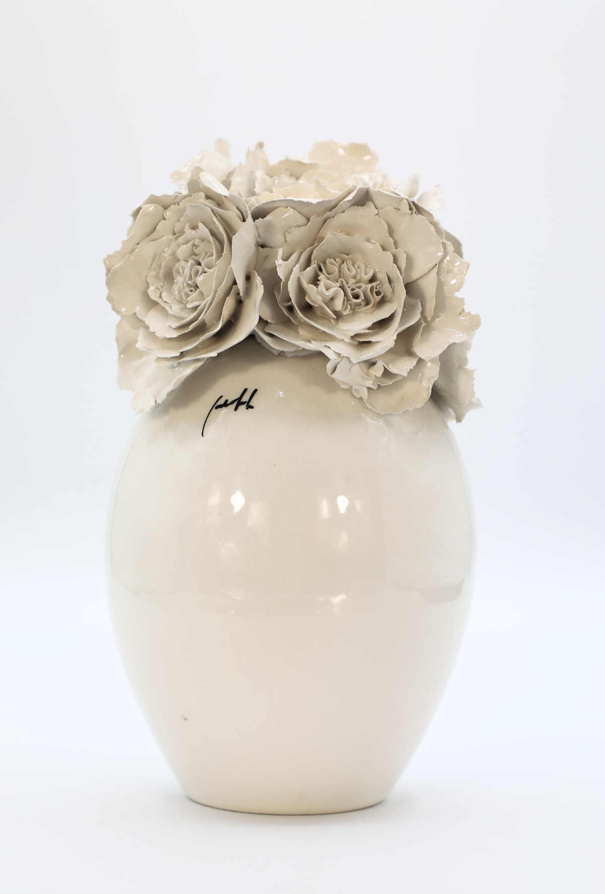 Questo capolavoro artigianale in ceramica bianca lucida è plasmato interamente a mano con una maestria che incarna raffinatezza e meticolosità nei dettagli. La sua forma, ispirata all'uovo, evoca universalmente il concetto di rinascita. La finitura lucida della ceramica dona all'oggetto un'eleganza senza tempo, rendendolo un pezzo di straordinaria bellezza.
