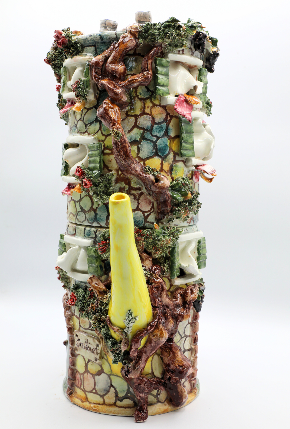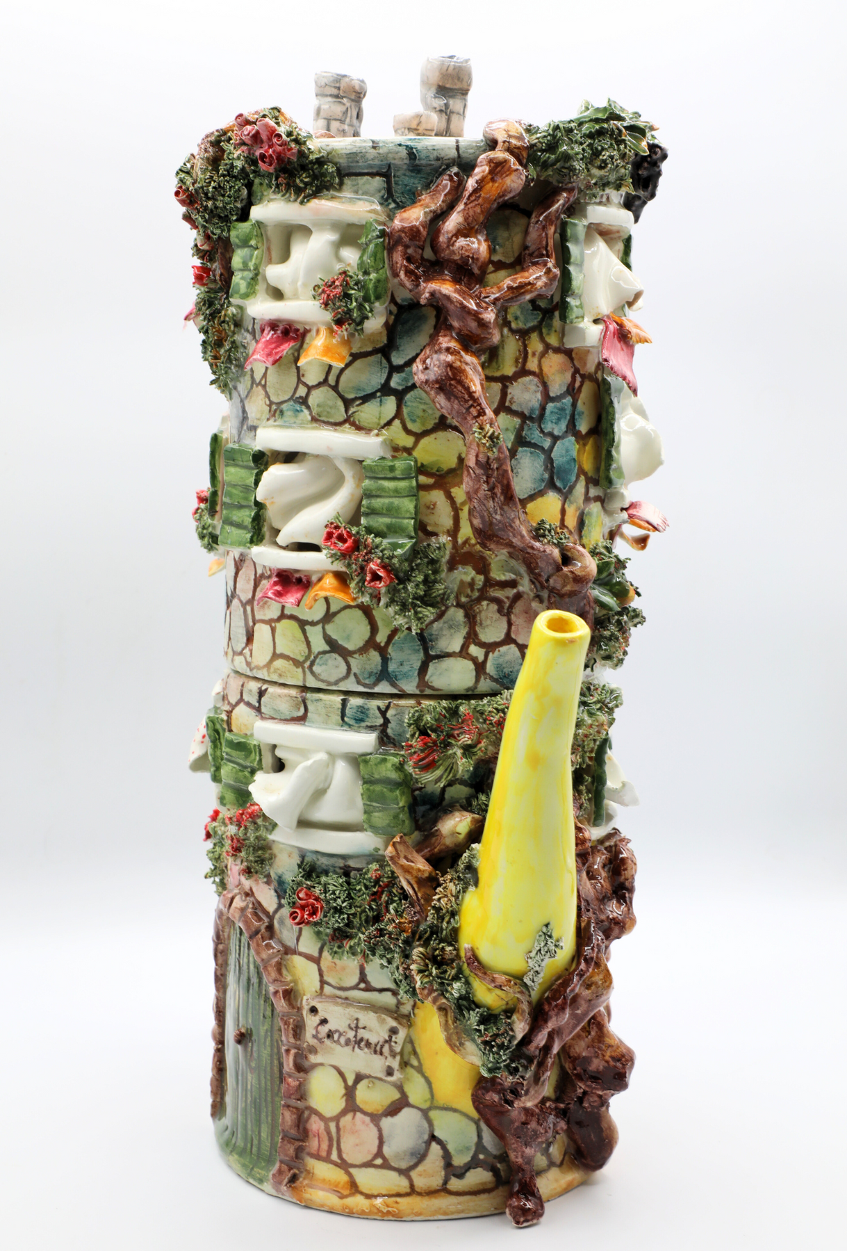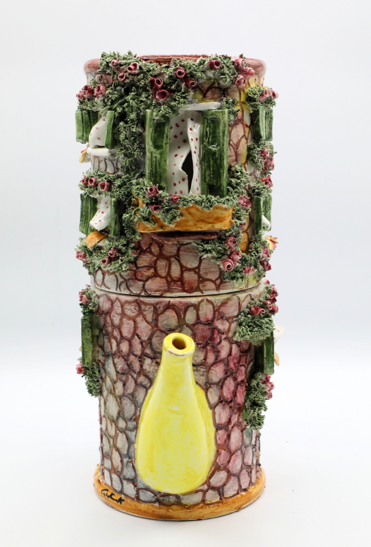 Realizzata completamente a mano, con maestria artigianale, ogni dettaglio è un’ode alla bellezza e alla tradizione di Napoli. Ed è così che, magicamente, la caffettiera si trasforma in un quartiere napoletano: finestre aperte accolgono la brezza marina, tende svolazzanti danzano al ritmo della vita urbana, mentre sui davanzali cuscini e coperte sono appesi ad asciugare. Bouganville variopinte abbracciano i muri, mentre limoni pendono dai rami degli alberi, trasportando l’osservatore direttamente nella magia partenopea.