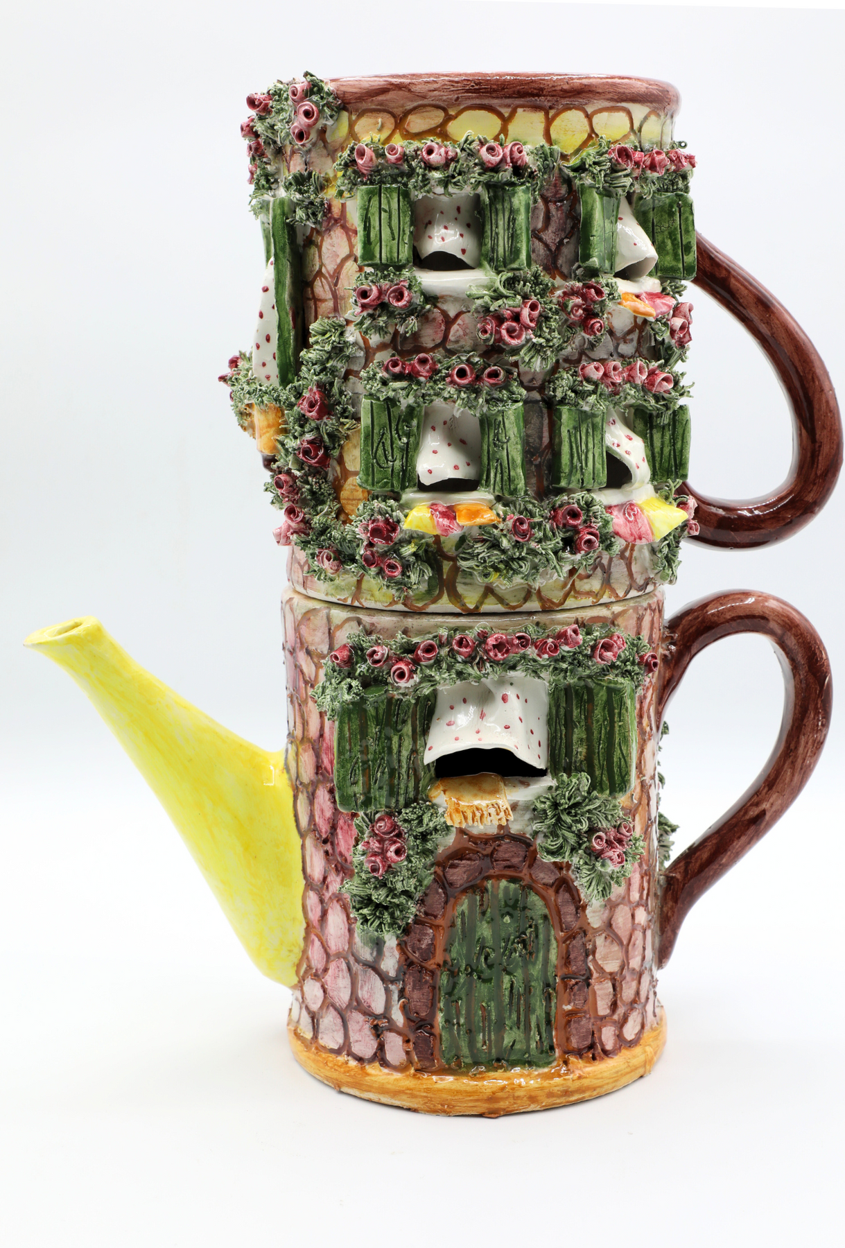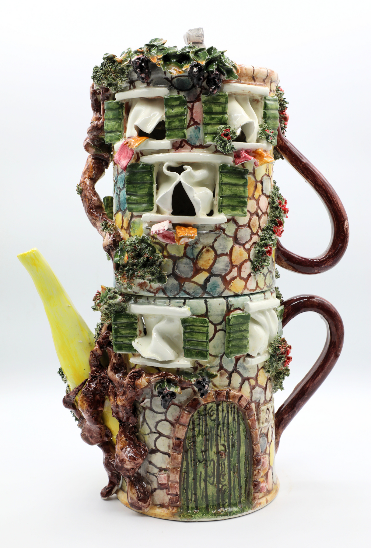 Questi elementi accoglienti invitano chi guarda a immaginare le storie e le conversazioni che si svolgono dietro le porte di questa Napoli magica, trasformando la caffettiera in un’opera d’arte che cattura non solo lo sguardo, ma anche il cuore di chi la contempla.