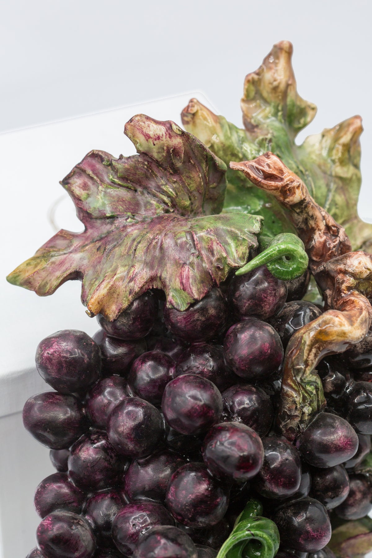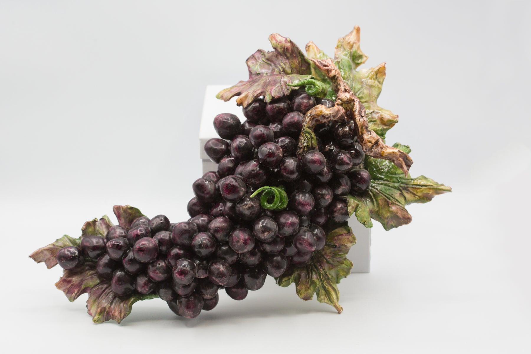 Questo grappolo d’uva in ceramica è plasmato con cura e maestria.
